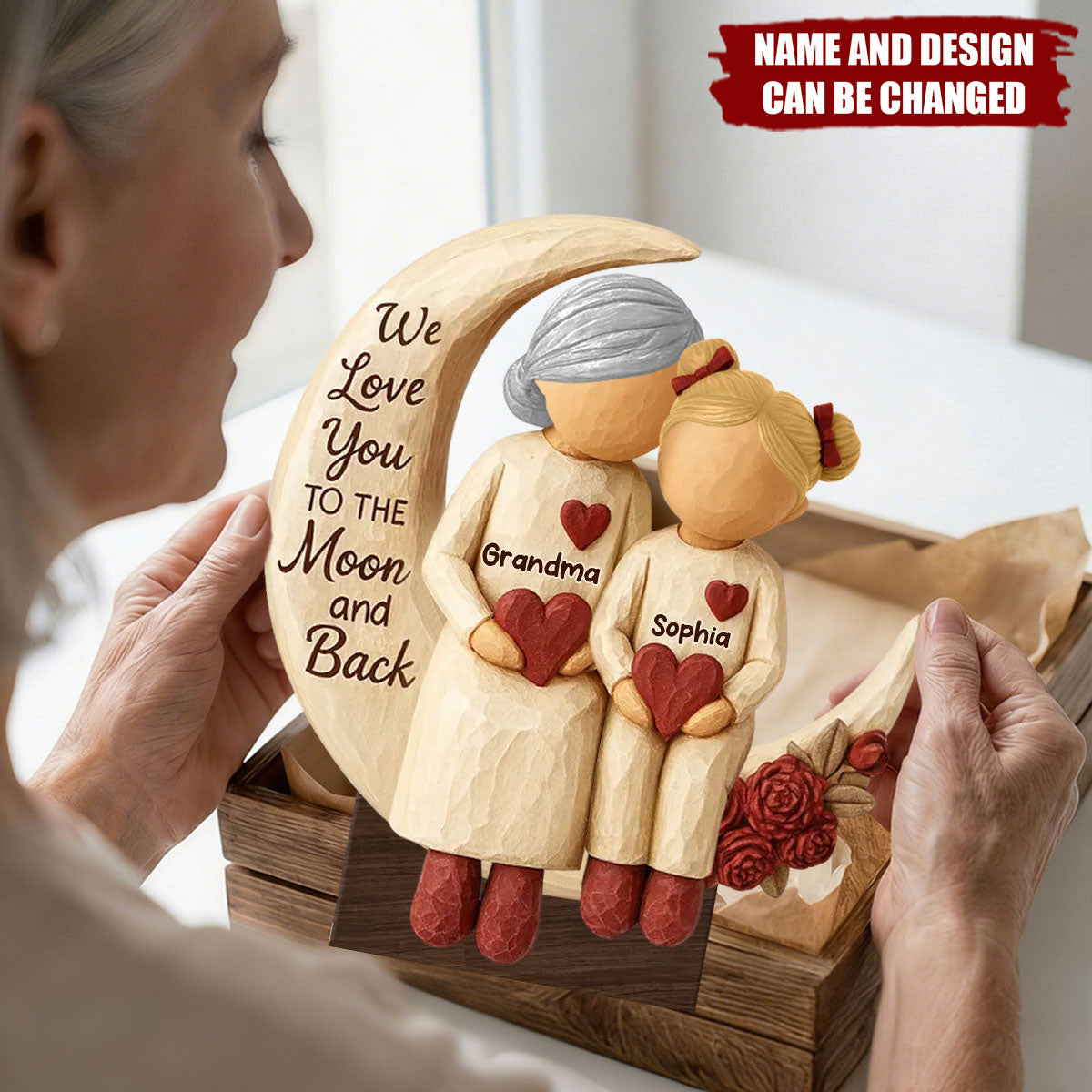 Grandma Grandkids on Moon - Personalized Standing Wooden Plaque